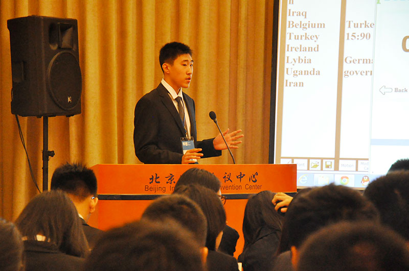 屏幕上跳动着让人紧张心跳的60秒倒计时,讲台上的人,用流利的英文,阐述着自己对国际热点问题的看法。这里不是联合国,这里是北京国际会议中心;他们不是联合国代表,而是来自各个著名学校的中学生。